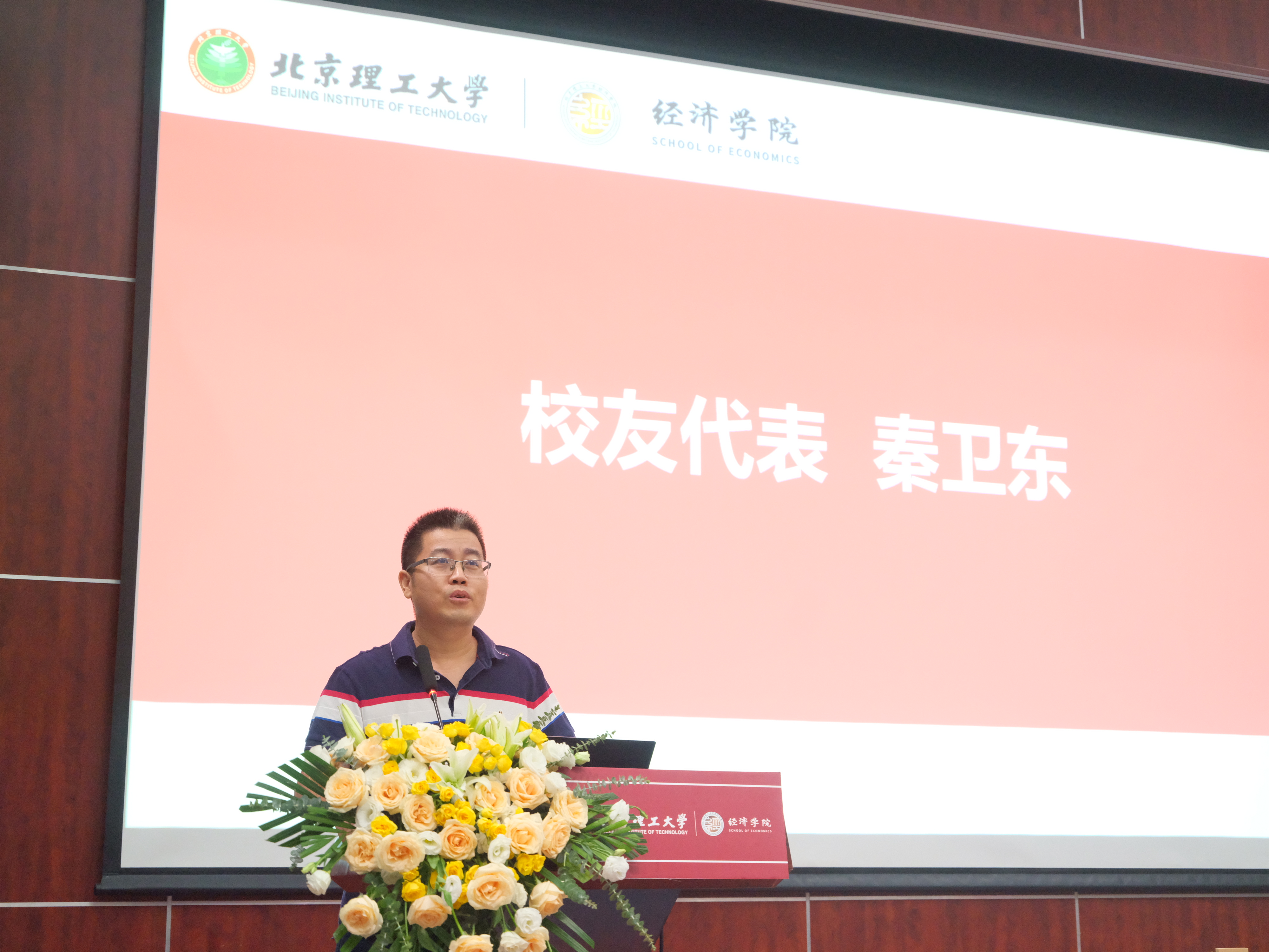 秦卫东作为校友代表发言。秦卫东讲述了自己的求学经历与北理工经济学专业的发展之路,以此鼓励同学们明确自己的初心使命,在完成校内课程之余,广泛阅读经济学著作,把握经济规律和发展周期,顺势而为、与时俱进、勇于探索,在学术之旅中取得辉煌成就,为母校发展添砖加瓦,为实现中华民族伟大复兴的中国梦贡献自己的力量。