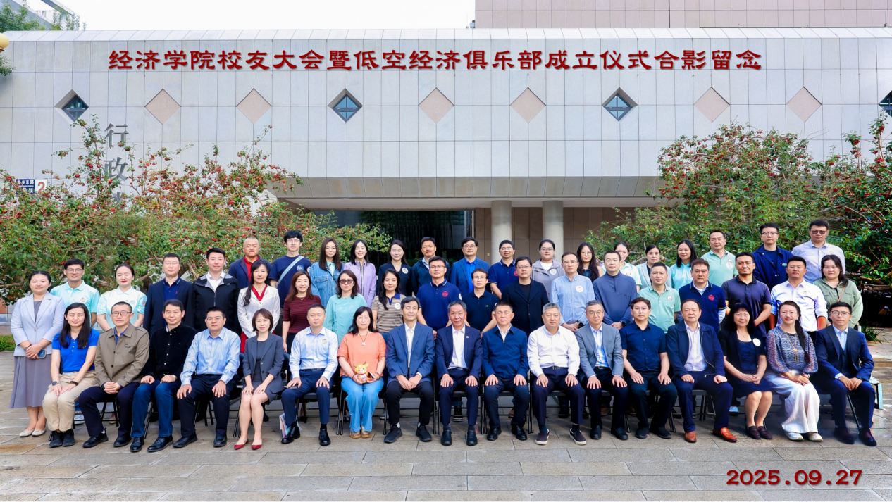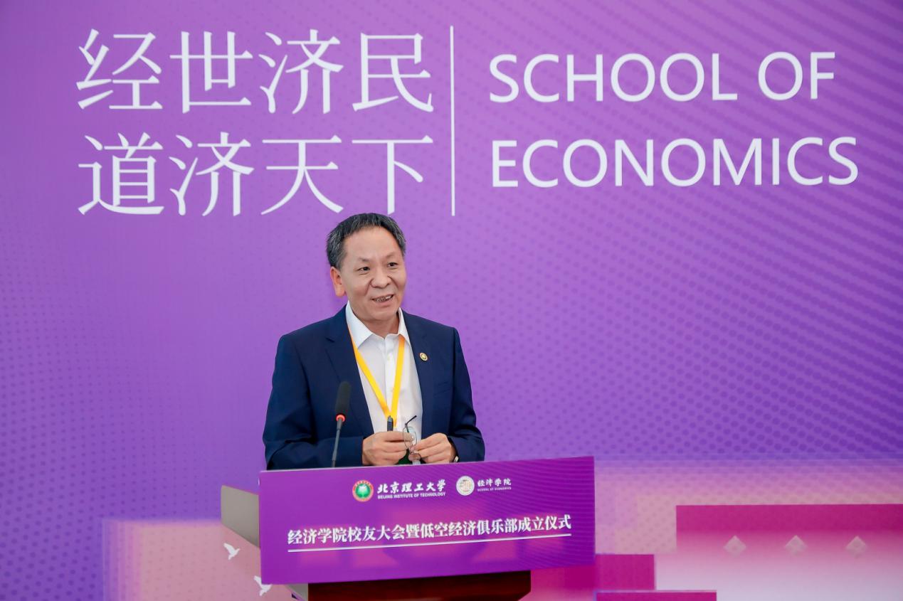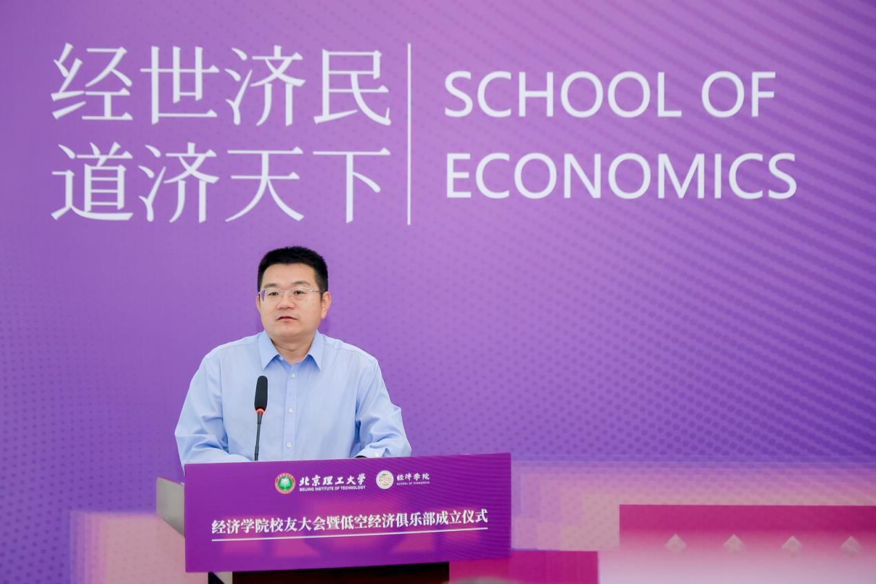 经济学院院长王兆华致欢迎辞,首先向返校校友致以热烈欢迎,他在欢迎辞中回顾了学院自1953年政治经济学教研室成立以来的发展历程,特别指出,学院已开设金融科技(低空经济方向)专业,推动经管学科与低空技术交叉融合,新获批金融、数字经济及低空经济三个专业硕士点,其中低空经济专硕为全国首批,将于明年招生,标志着学院在服务国家战略、构建跨学科培养体系方面取得重要进展。同时强调,校友是学院宝贵的财富,低空经济俱乐部的成立是学院服务国家战略、深化产教融合的重要举措,旨在推动学术与产业双向赋能,为低空经济发展提供人才与智力支持。