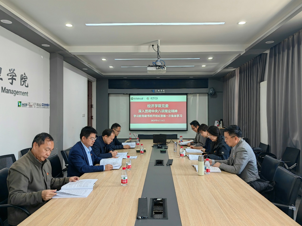 会议同步举行了经济学院深入贯彻中央八项规定精神学习教育读书班开班式, 张瑜领学了《中共中央政治局贯彻落实中央八项规定的实施细则》等内容开班式后,经济学院党委理论学习中心组开展第一次集体研讨学习。