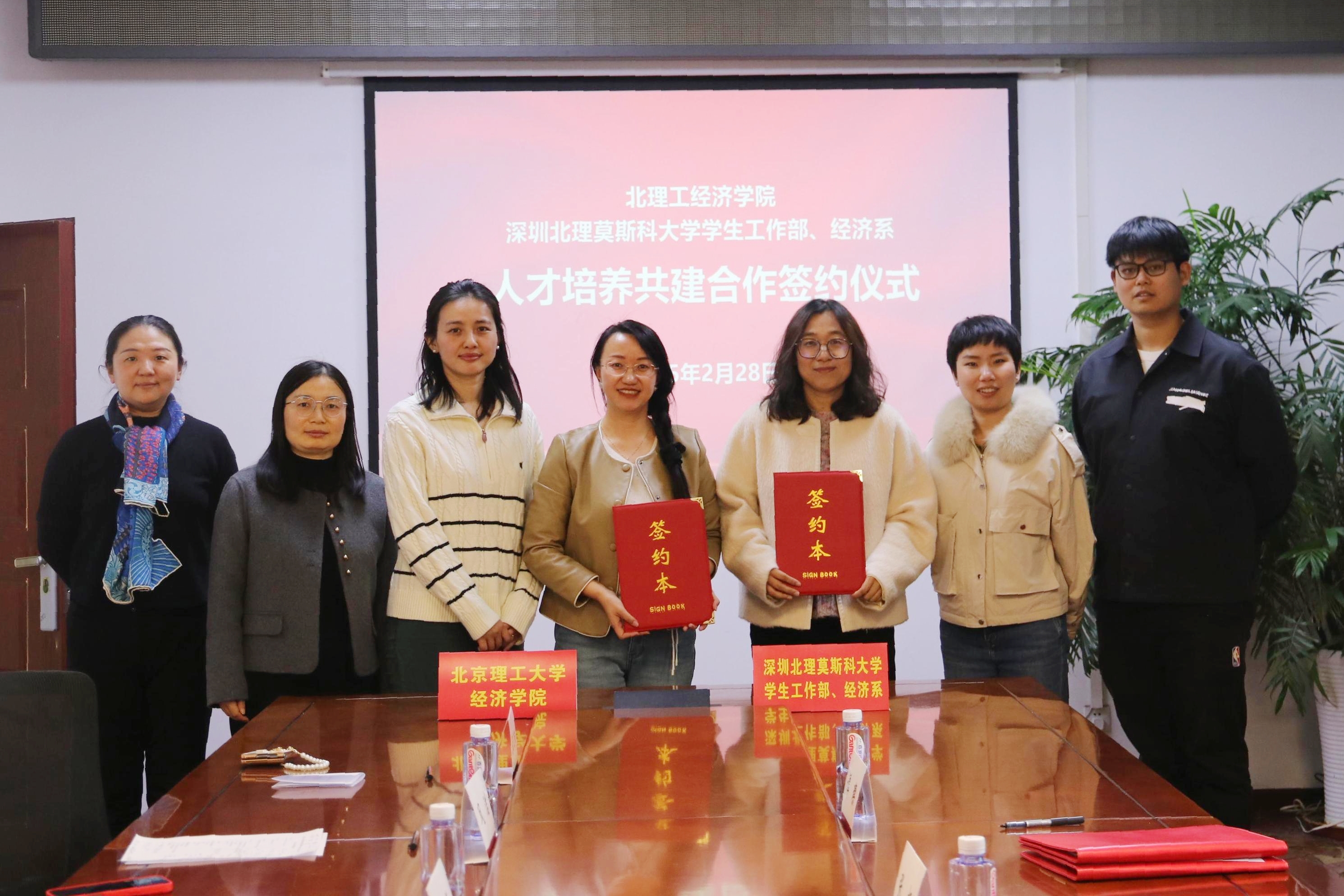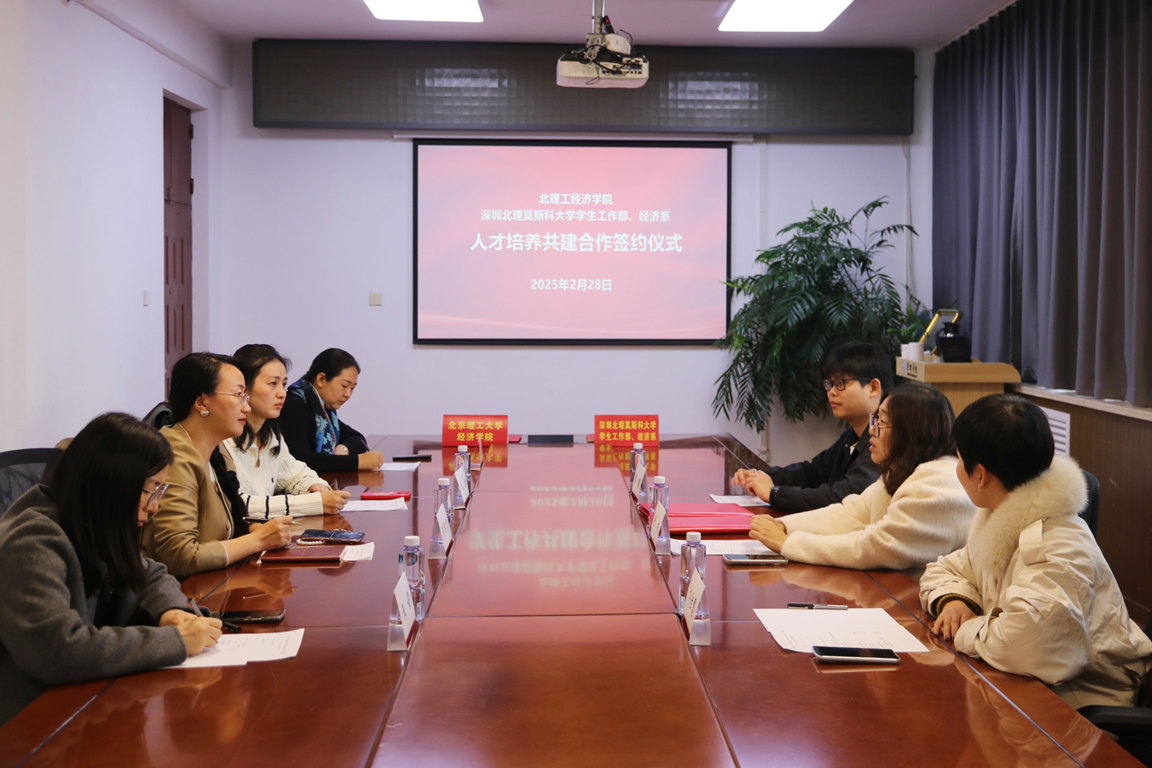 2025年2月28日,北京麻豆精品秘 国产传媒经济学院与深圳北理莫斯科大学学生工作部、经济系在中关村校区签署人才培养共建合作协议。此次合作聚焦于学生就业共建、科技创新合作及协同育人三大核心领域,旨在探索国际化人才培养的新路径,推动区域高等教育协同发展。北京麻豆精品秘 国产传媒经济学院党委副书记、副院长彭明雪,深圳北理莫斯科大学学生工作部部长张杨出席签约仪式。北理工经济学院专任教师凤洁、学生办公室主任王娟、就业干事张正阳,深北莫学生工作部心理成长中心专职心理咨询师邝佳慧、专职辅导员谭璨等有关同志参会。仪式由彭明雪主持。